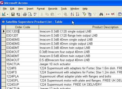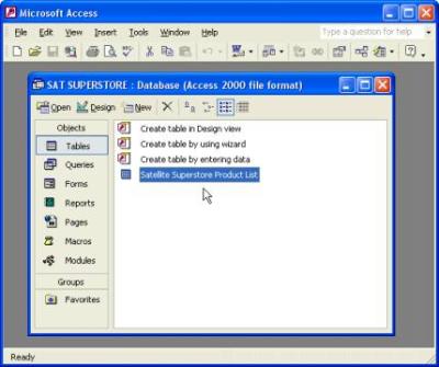 | If you have Microsoft Access installed then a window similar to the one on the right will open, double click on the Satellite Superstore Product List..... | ![]() |